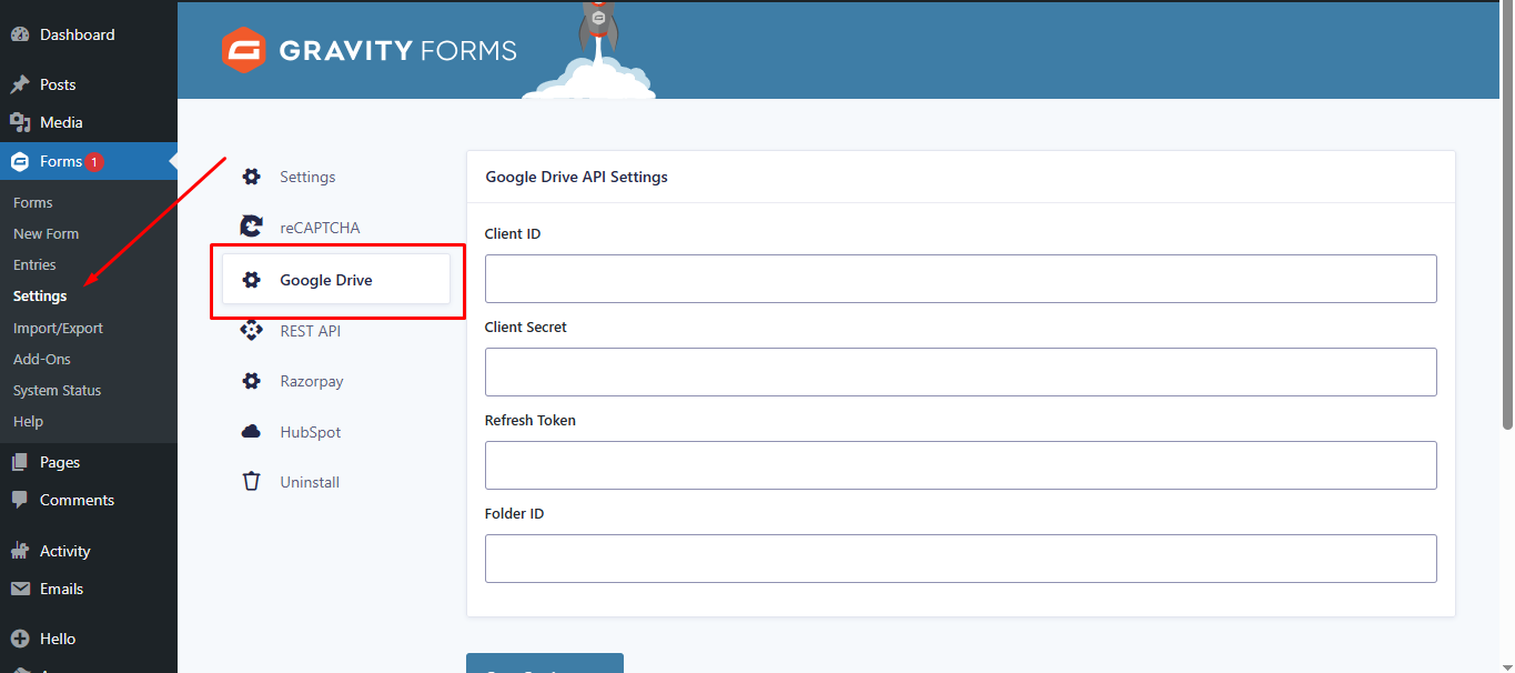 • Google Drive API Settings: Configure your Client ID, Client Secret, and destination Folder ID in the main settings.