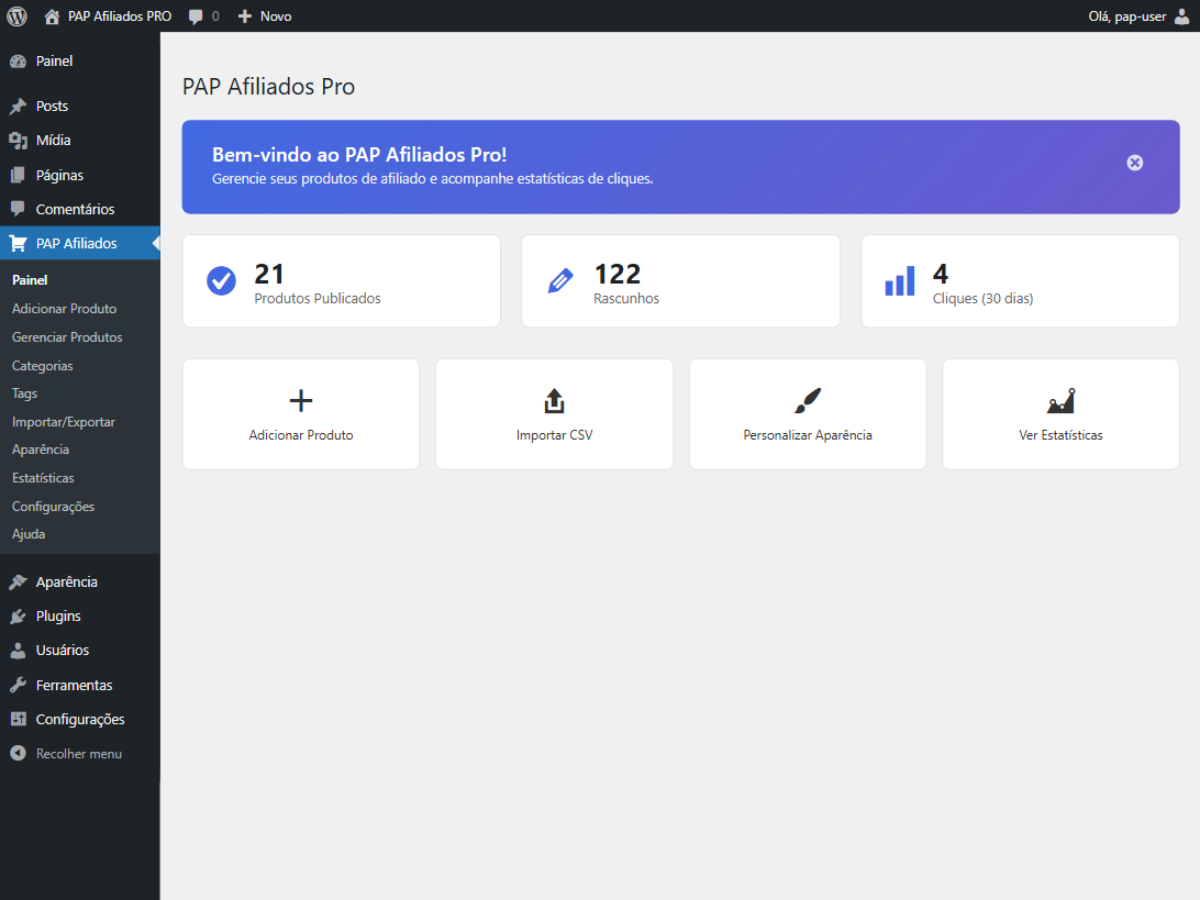 Turn your content into revenue with professional product cards. PAP Afiliados Pro lets you showcase affiliate products with customizable visual templates, automatic marketplace detection, and detailed click statistics — no coding required.