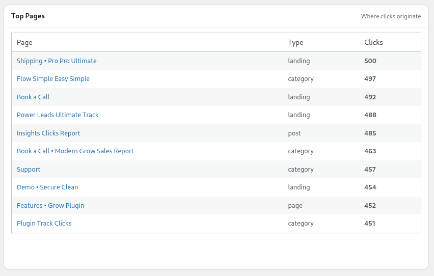 - Added Top Sources, Mediums, Campaigns, Pages and Clicked URLs charts.