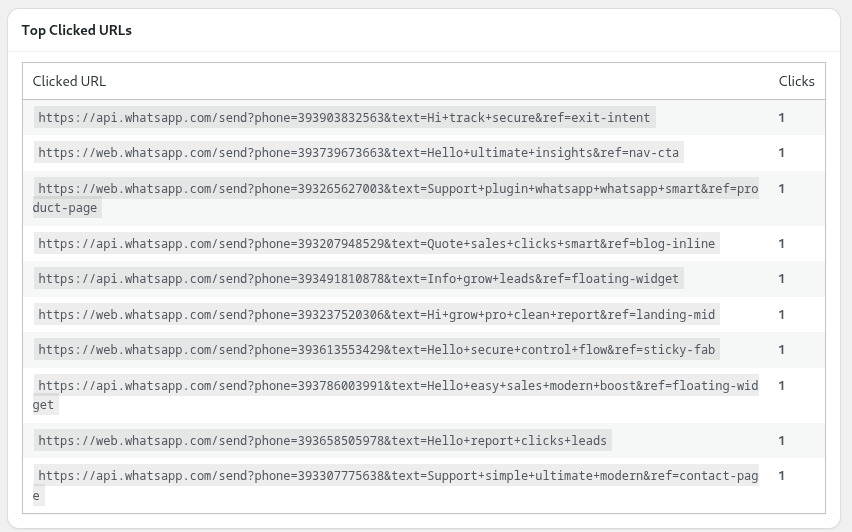 - Optional badge counter showing total clicks next to each WhatsApp link on the page
