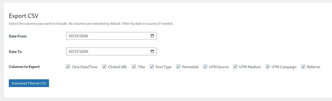 - Added advanced report filters (date range, post type, permalink, UTM).