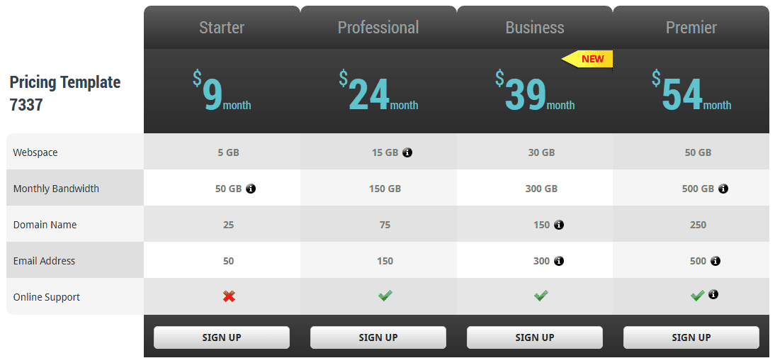 • Added 1 more ready-made pricing table templates